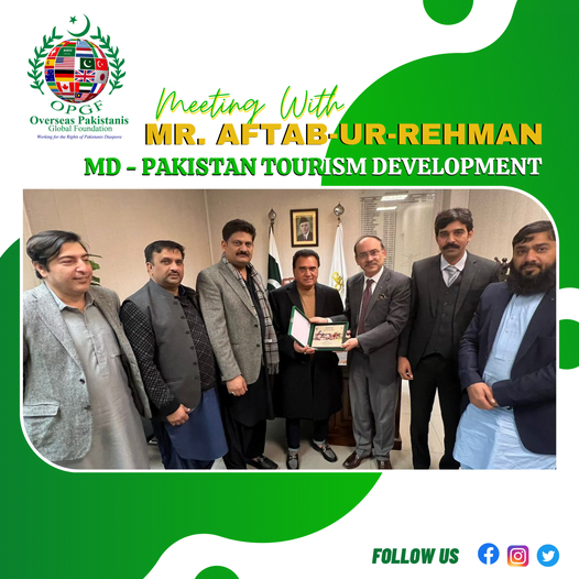 The Overseas Pakistanis Global Foundation (OPGF) had the pleasure of meeting with Mr. Aftab-ur-Rehman Rana, Managing Director of Pakistan Tourism Development. The meeting centered around productive discussions on the growth and development of Pakistan’s tourism sector, with a focus on positioning the country as a top global tourist destination.